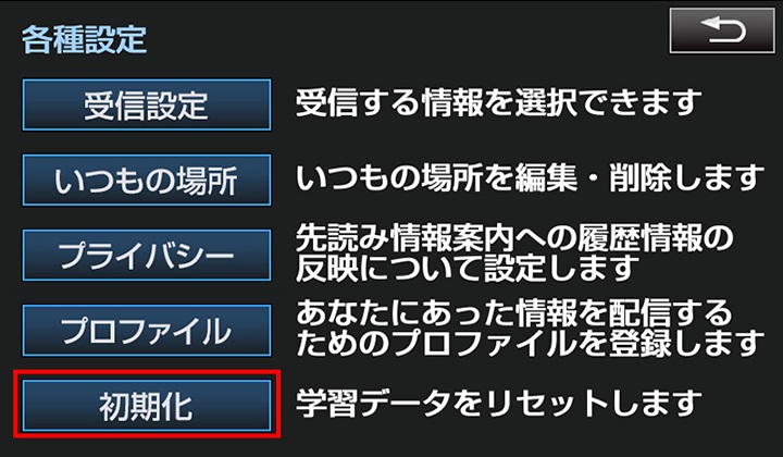「エージェント+」を初期化した場合、いつも通るルートなどの学習データが全て初期化されます。また、「エージェント+」が配信する受信設定や通知設定もリセットされます。おクルマを手放す際は、事前に必ずナビにて初期化操作をおこなってください。